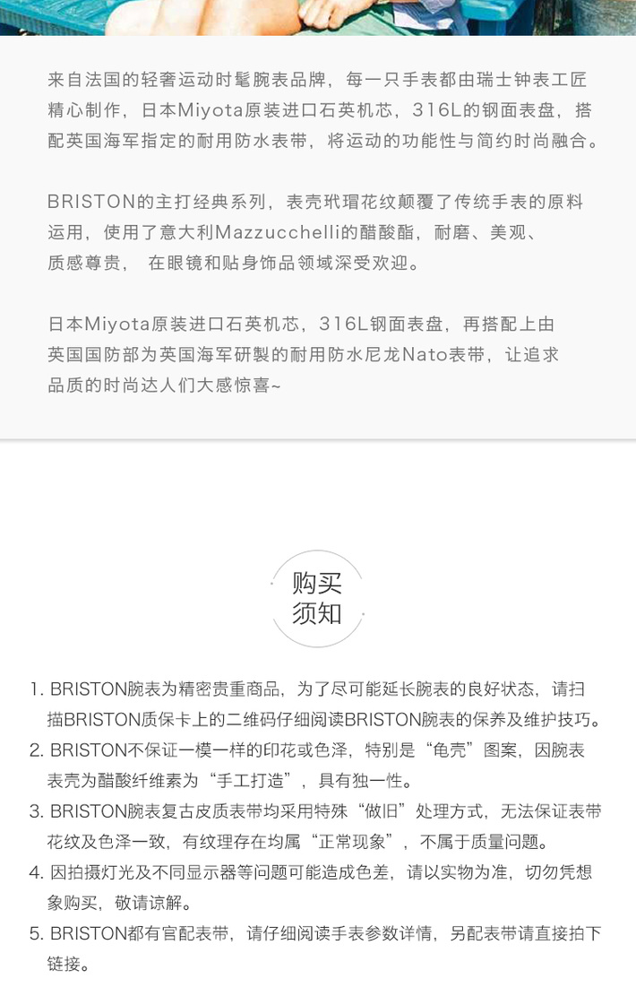 BRISTON法国时尚玳瑁金圈绿色男女中性手表