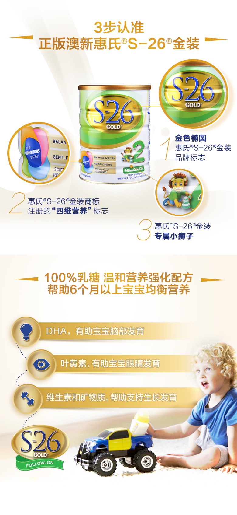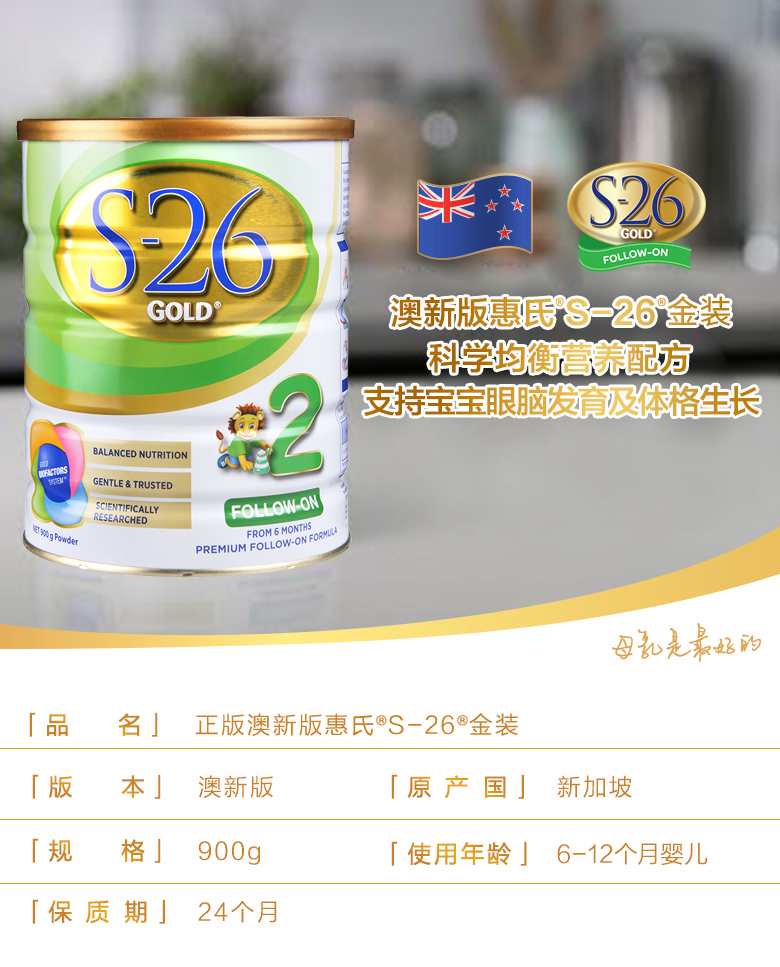 澳新版WYETH惠氏 S-26金装婴幼儿奶粉2段 900G/罐