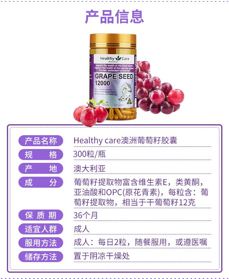 Healthy Care 葡萄籽精华片 300s