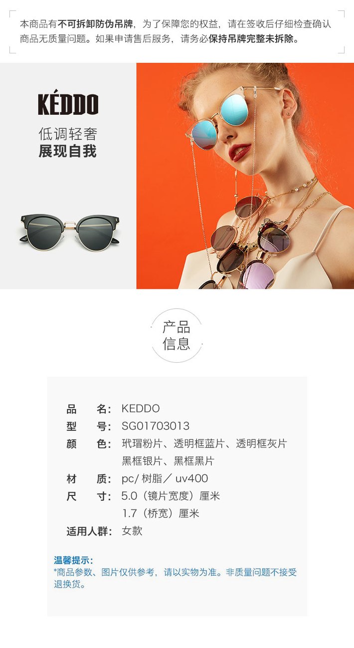 keddo2018夏季新款太阳镜女 复古 女款 明星同款 优雅墨镜