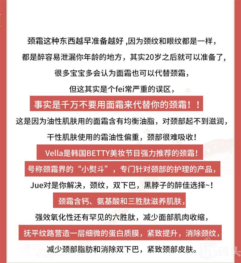韩国Vella颈霜 颈部小熨斗脖颈紧致霜 滋润紧致提拉