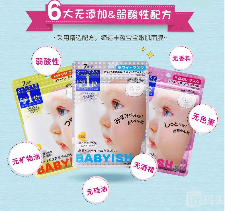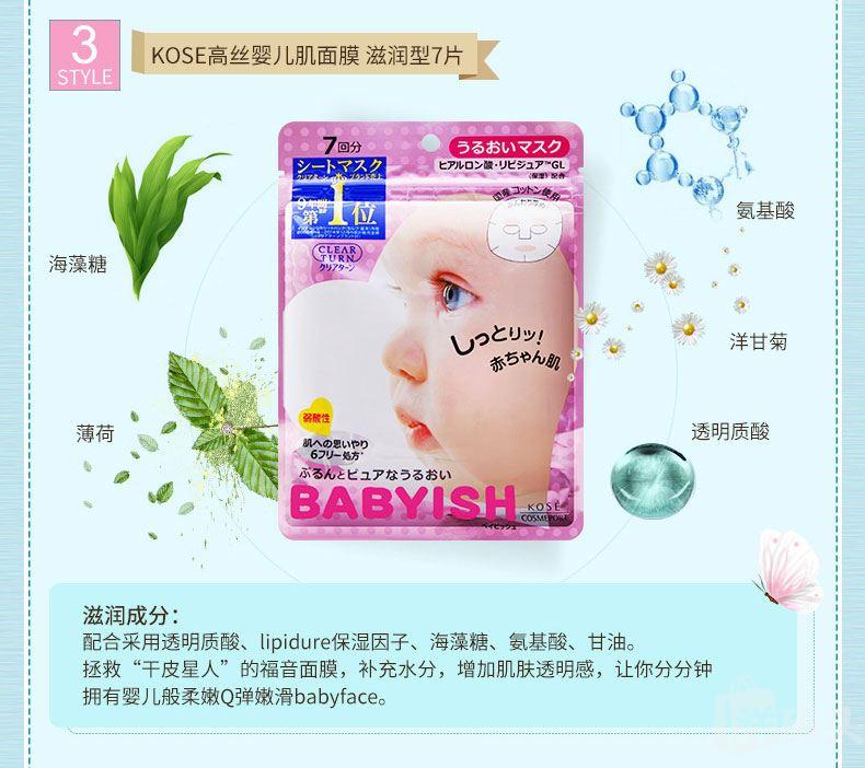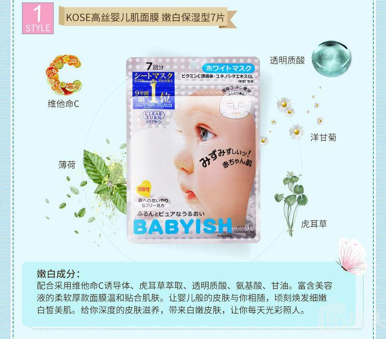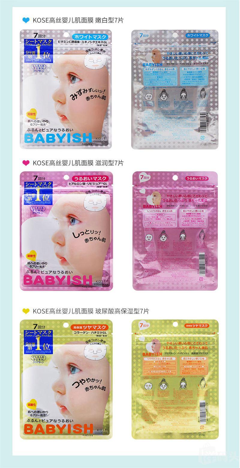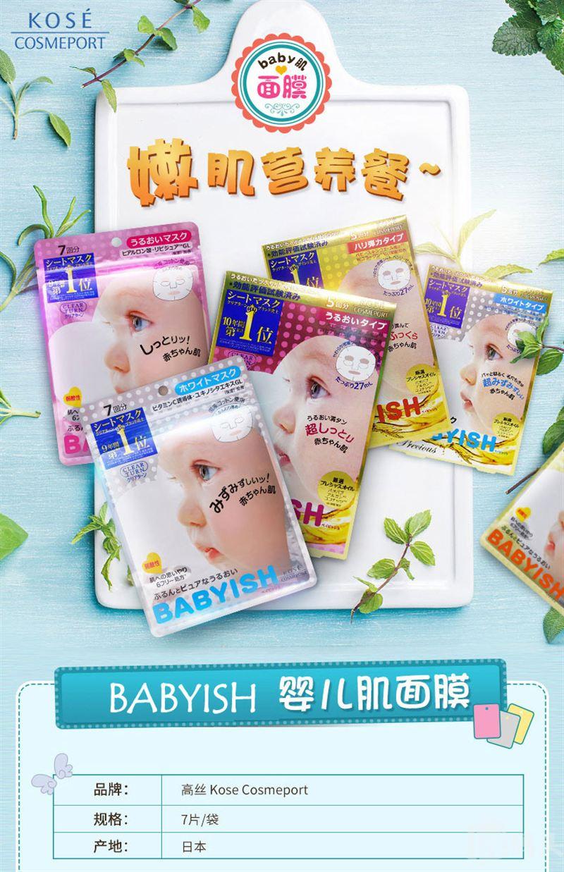 日本Kose 高丝婴儿肌补水保湿面膜 滋润嫩白保湿7片入