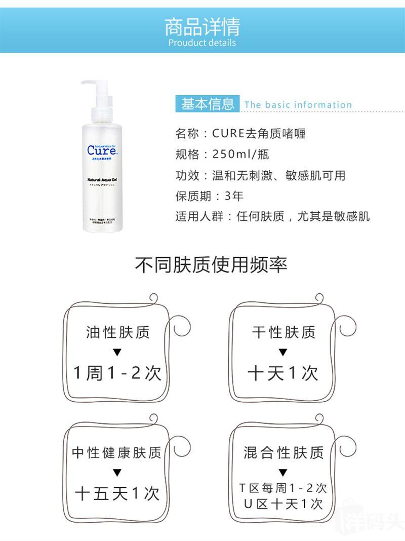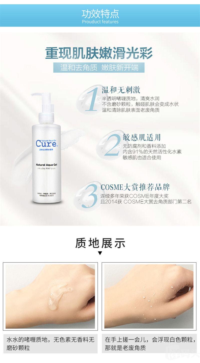 日本Cure去角质凝胶啫喱 活性化水素去角质死皮卸妆啫喱 250g