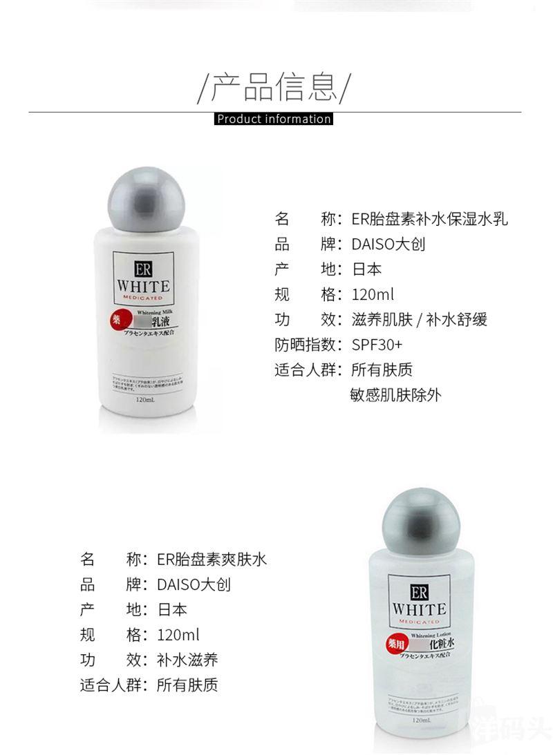 两件 Daiso 大创化妆水+乳液 ER药用胎盘素美白淡斑保湿 120ml