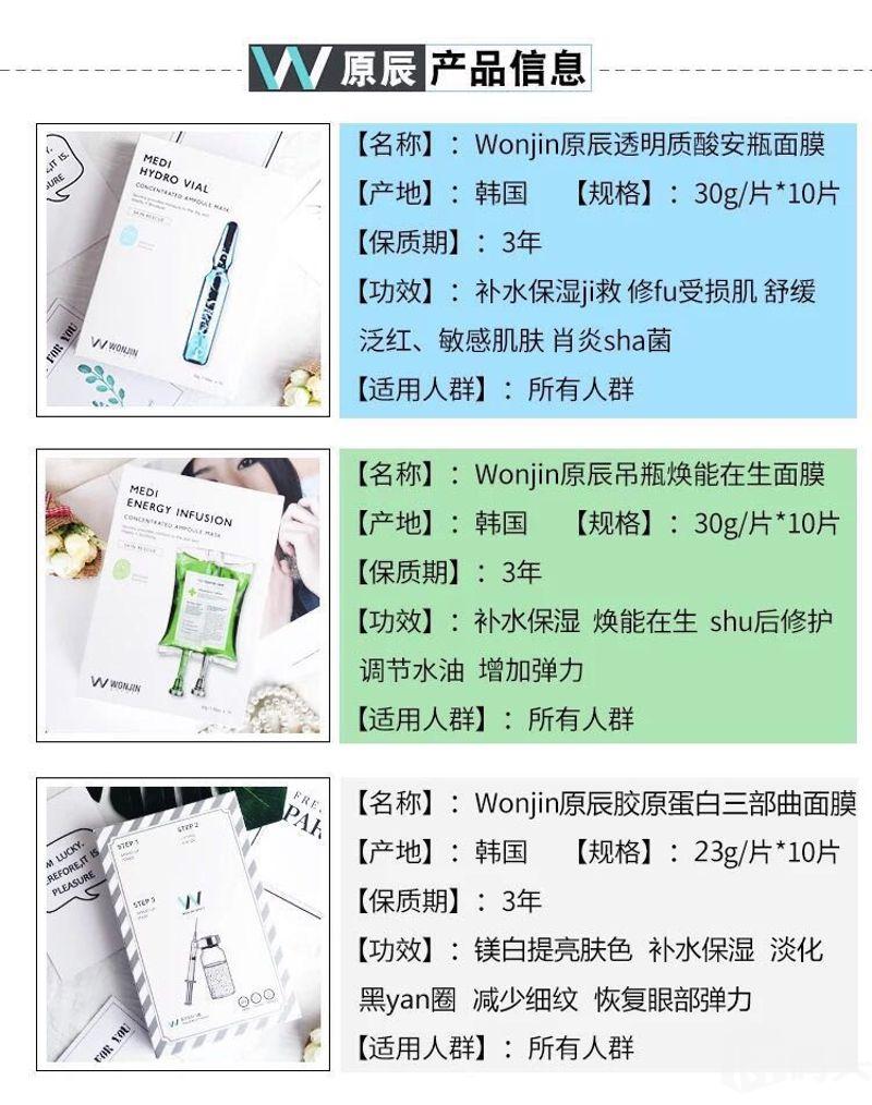 韩国原辰wonjin透明质酸安瓶吊瓶面膜急救补水保湿10片