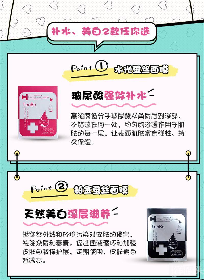5片日本Tenbe天倍面膜小分子玻尿酸水光蚕丝面膜补水嫩肤提亮美白