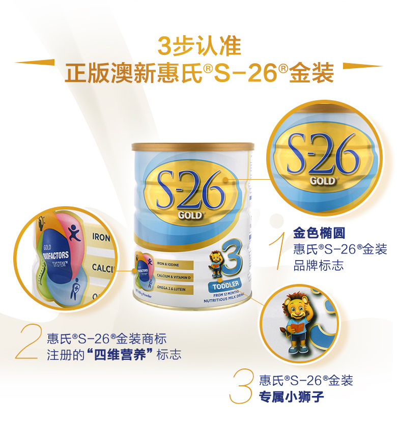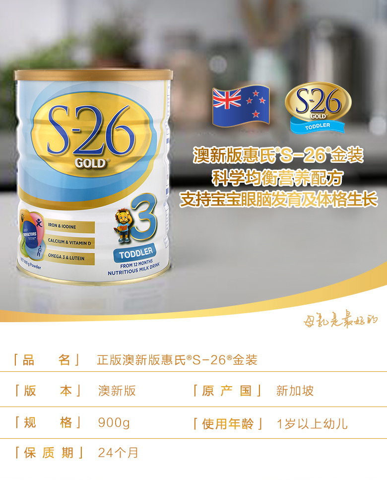 澳新版WYETH惠氏 S-26金装婴幼儿奶粉3段 900G/罐