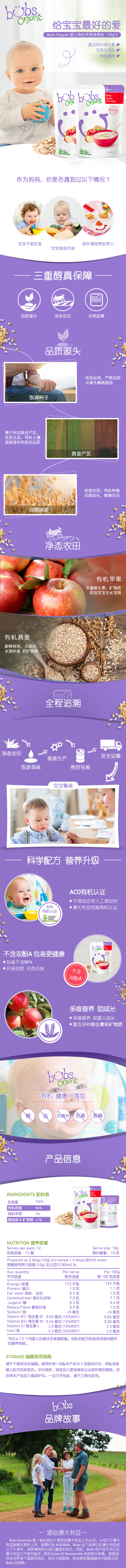 BUBS贝儿 有机婴儿苹果燕麦粥 125G/袋