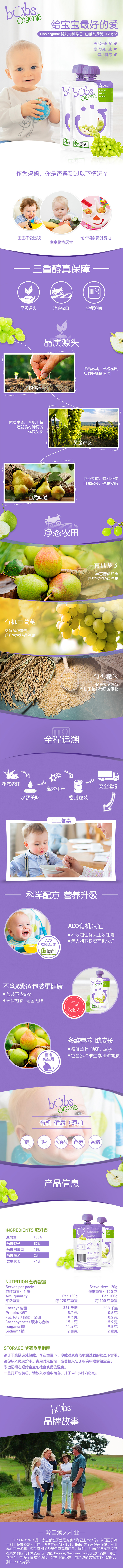 BUBS贝儿 有机梨子+白葡萄果泥 120G/包