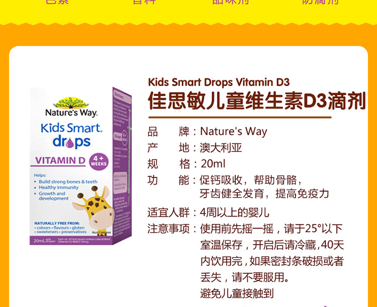 佳思敏natures Way婴幼儿维生素D滴剂 20ml