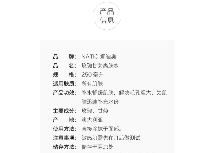 NATIO娜迪奥香薰甘菊玫瑰爽肤水 250ML/瓶