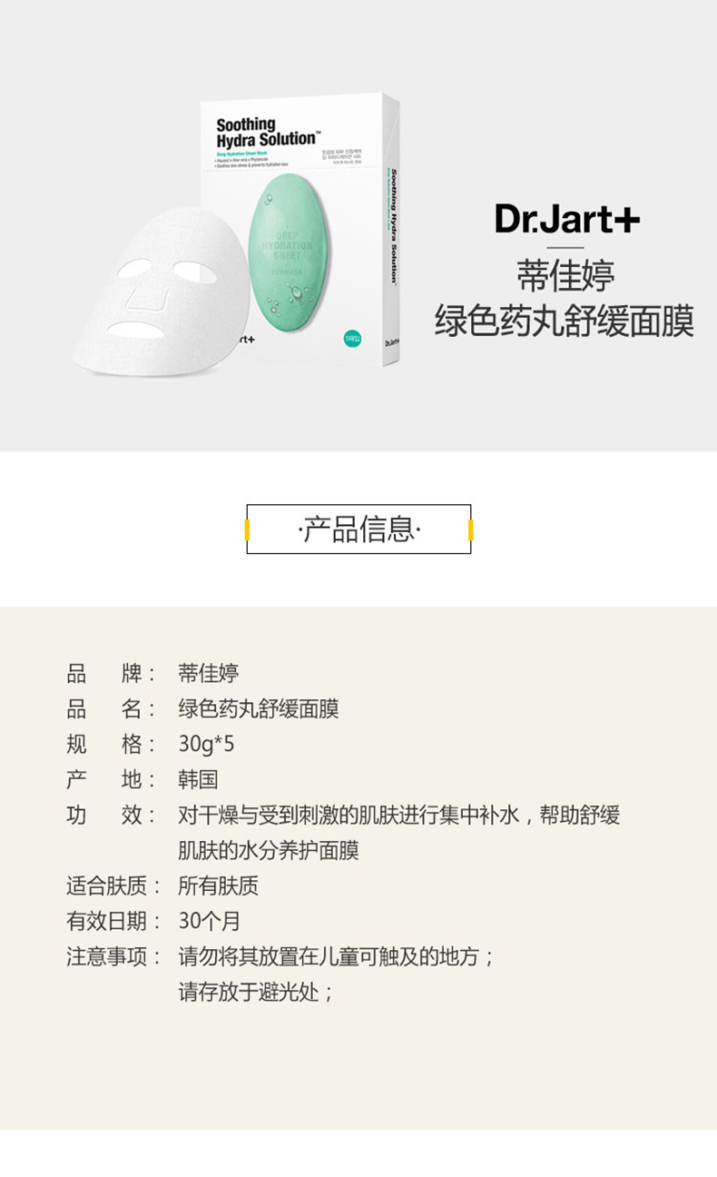 Dr.Jart+ 宛若新生水漾保湿舒缓面膜(绿色) 5片/盒