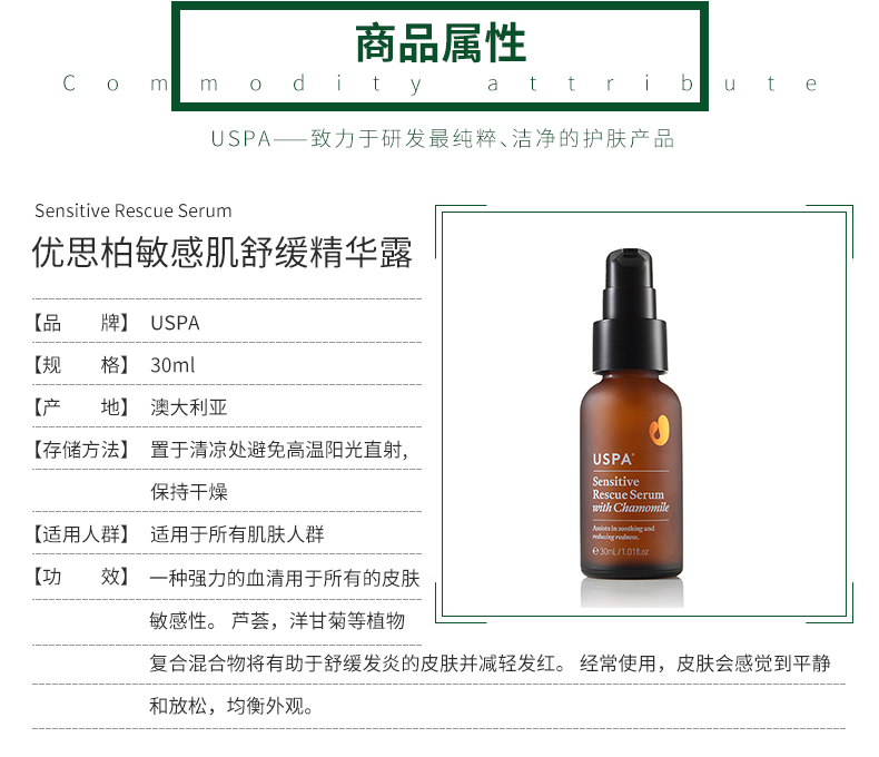 USPA敏感肌急救舒缓精华露30ML/瓶