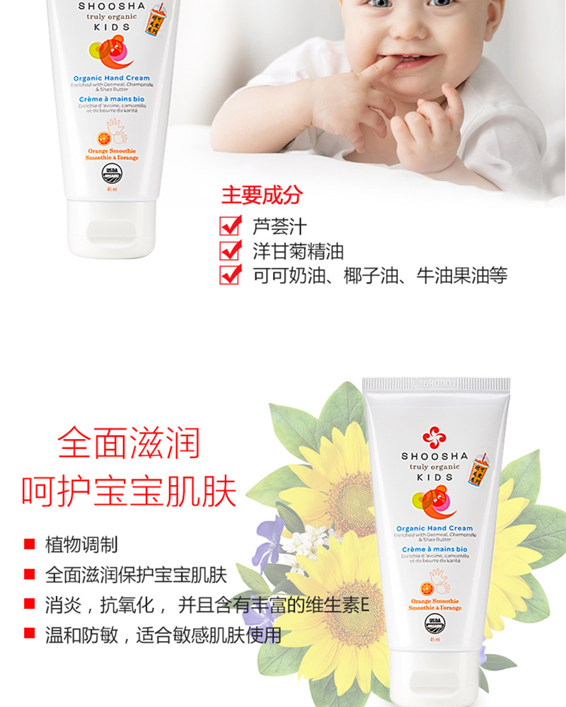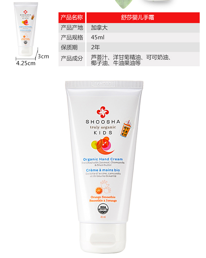 舒莎SHOOSHA 婴儿橘子奶昔护手霜