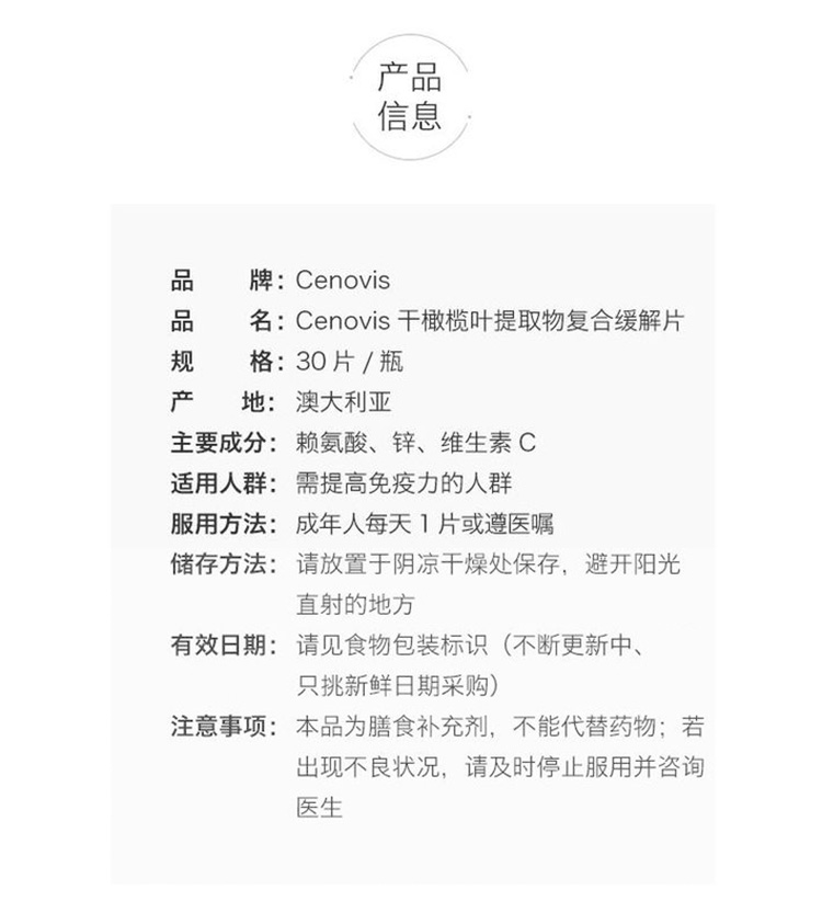 CENOVIS 干橄榄叶提取物复合缓解片 30片/瓶