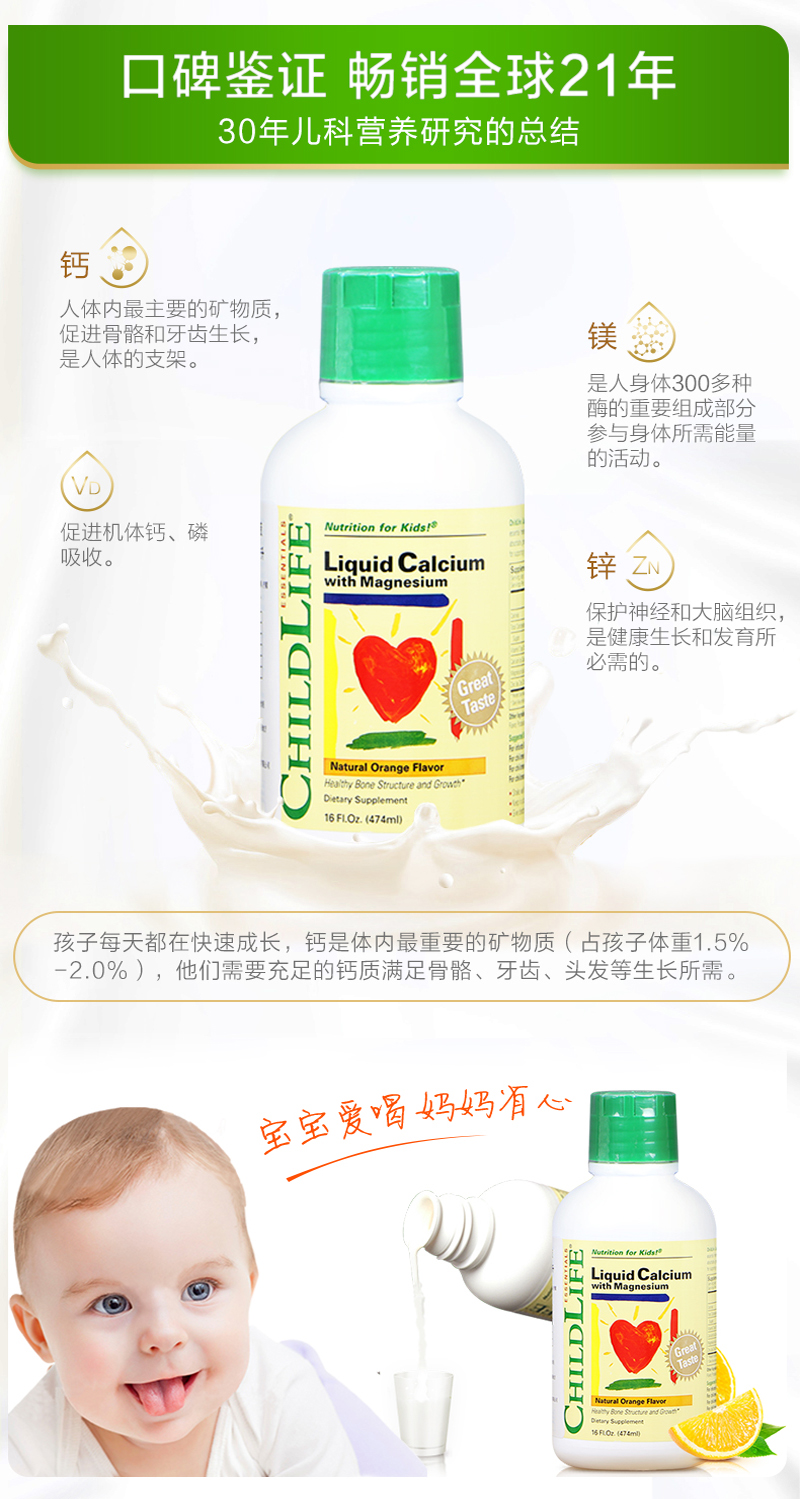 CHILDLIFE童年时光 CALCIUM WITH MAGNESIUM-16OZ钙镁锌