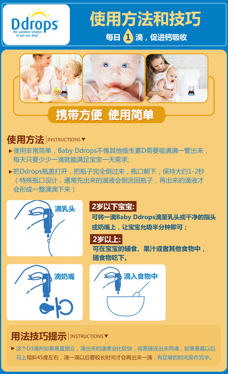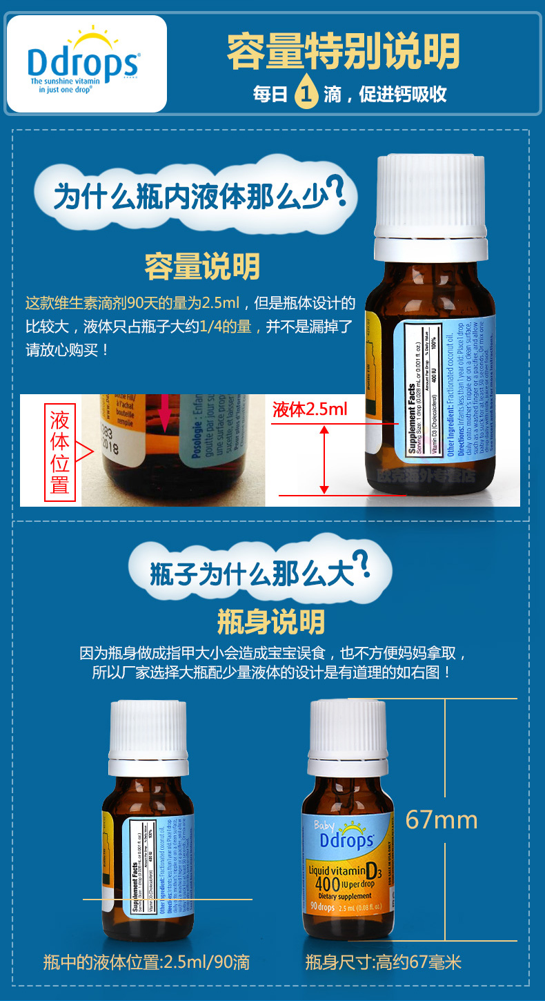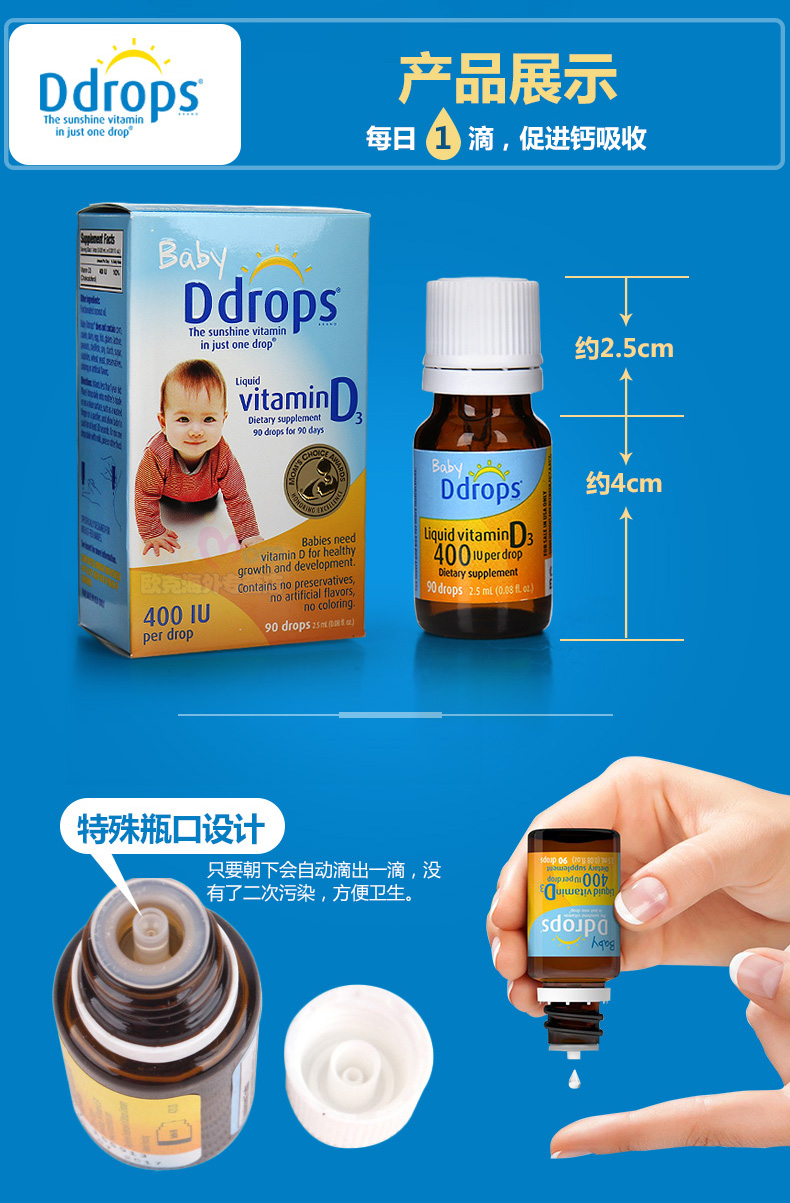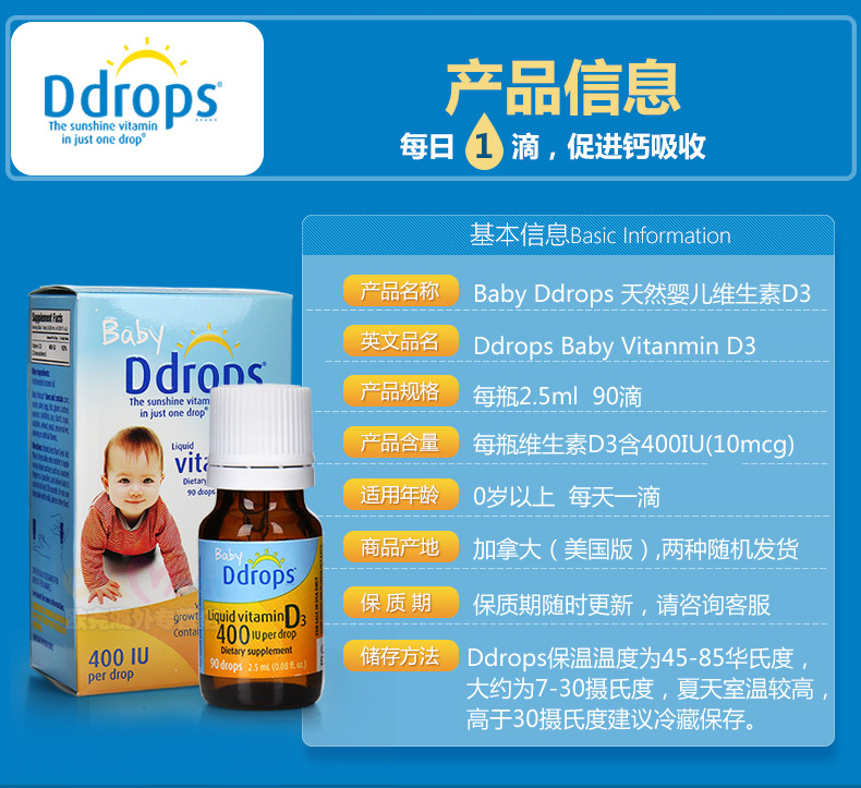 BABY D DROPS D3 婴幼儿童维生素滴剂400IU 90滴 2.5ML/瓶