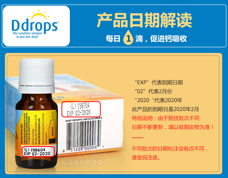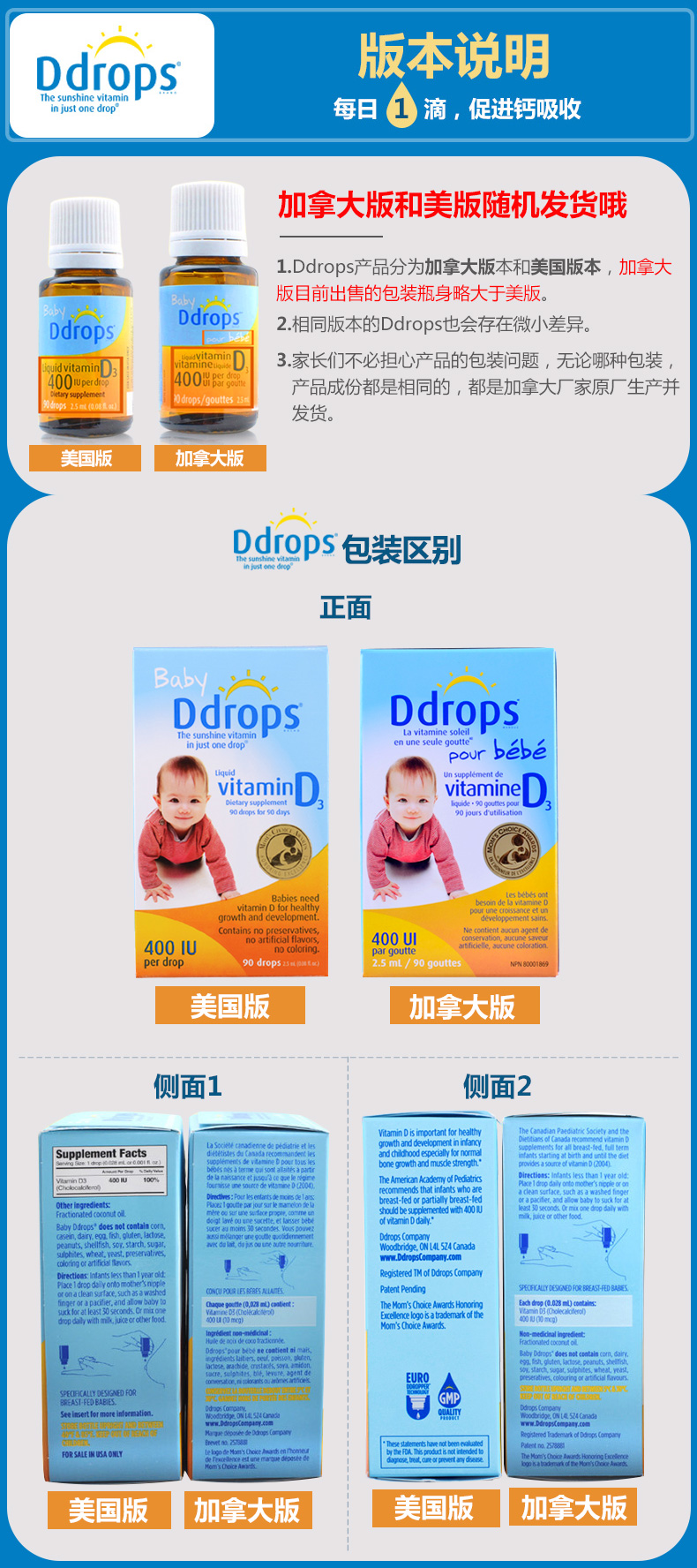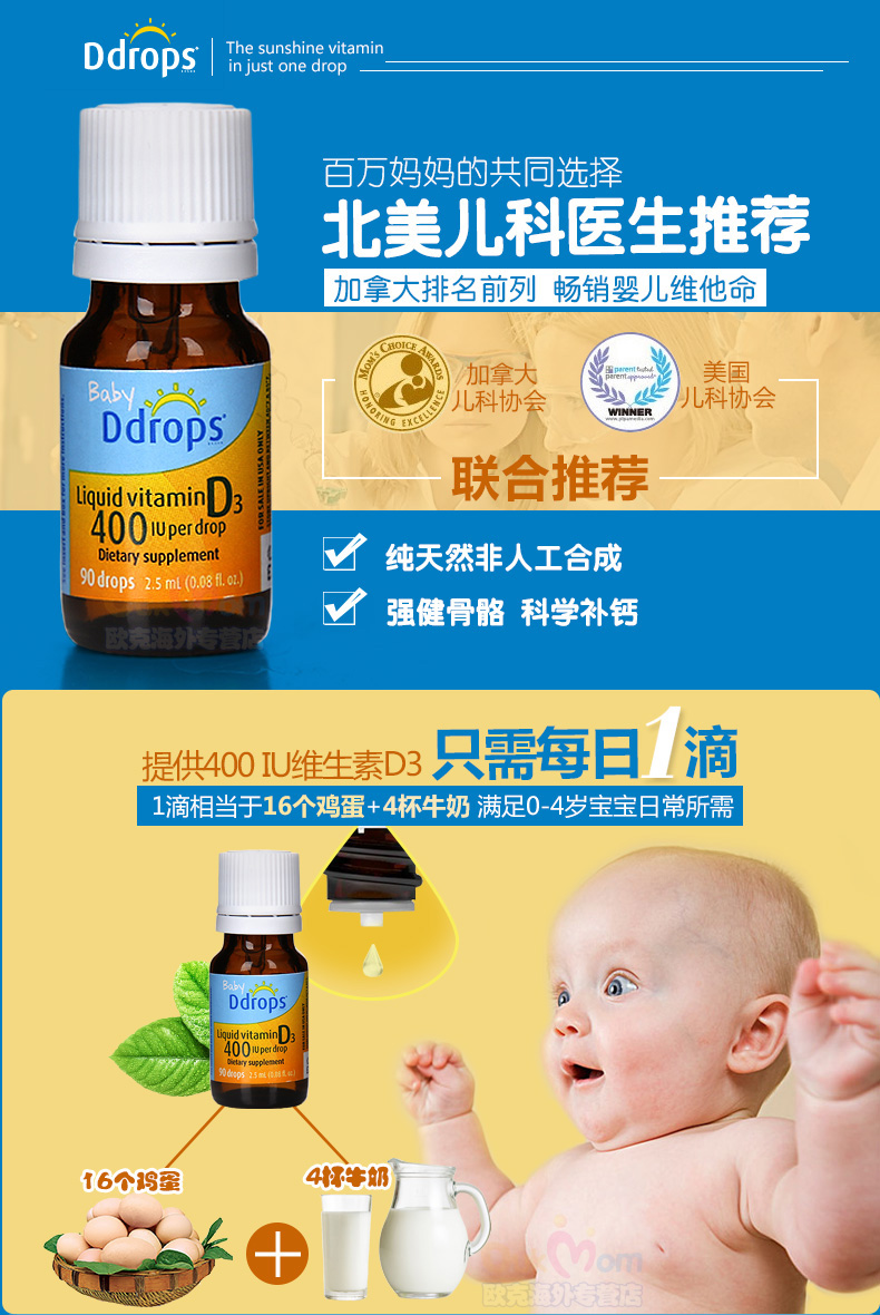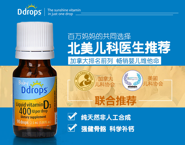 BABY D DROPS D3 婴幼儿童维生素滴剂400IU 90滴 2.5ML/瓶